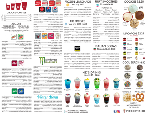 We strive to serve THE BEST specialty drinks around. We are constantly thinking up new combinations to put a fun and delicious modern twist on the old soda fountain shop. We are serious drink connoisseurs and want you to be happy with what we serve…so let us know how we can make our drinks better, customized to your liking, new concoctions you'd like to try, or an old favorite you would love to see again. Our cookies are simply the bomb and so are our cupcakes! We have so many flavors we could never list them all, as well as a line of custom hot chocolate and steamers. We know that good service and a delicious treat can just make a good day a GREAT one! We hope to see you soon…. :)~ FiiZ